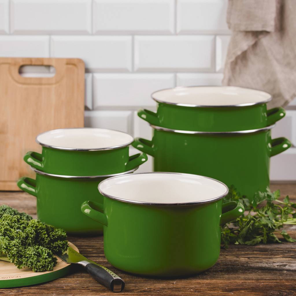 Enamelled pot 14 cm 1.25 l green EMALIA OLKUSZ